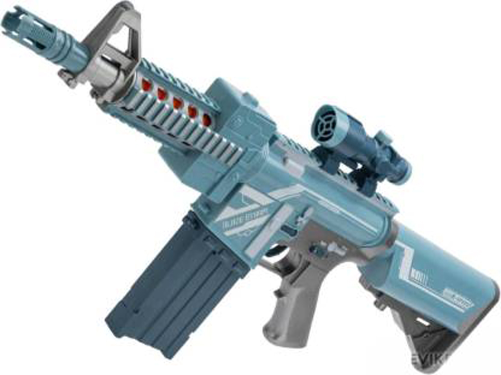 The Miss & Chief Blaze Storm Gun is a battery-operated soft dart gun