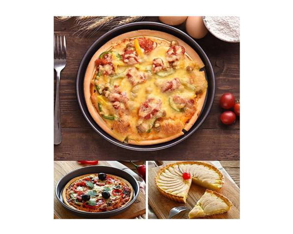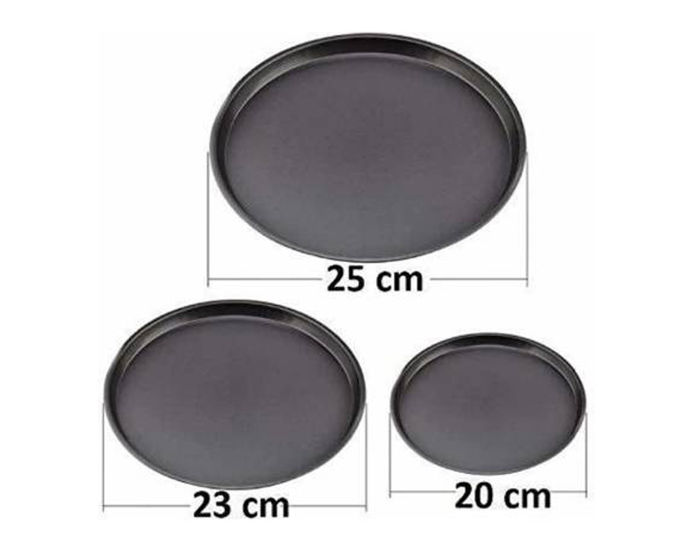 Carbon Steel Pizza Baking Pan Set of 3 Black (26cm, 29cm,